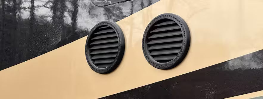 View Full Product PageType G Vent Kits Vent your house, garage or RV in an hour Portable air conditioner exhaust vent kit designed for houses, RVs (motor homes) and fifth wheels. The kit is easy to install and requires no screws. The external slanted vent slats prevent rain from entering the vent while the built-in insect screen blocks entry for critters larger than 2 mm (the insect screen holes cannot be too tight so as not to have a negative impact on air flow).
